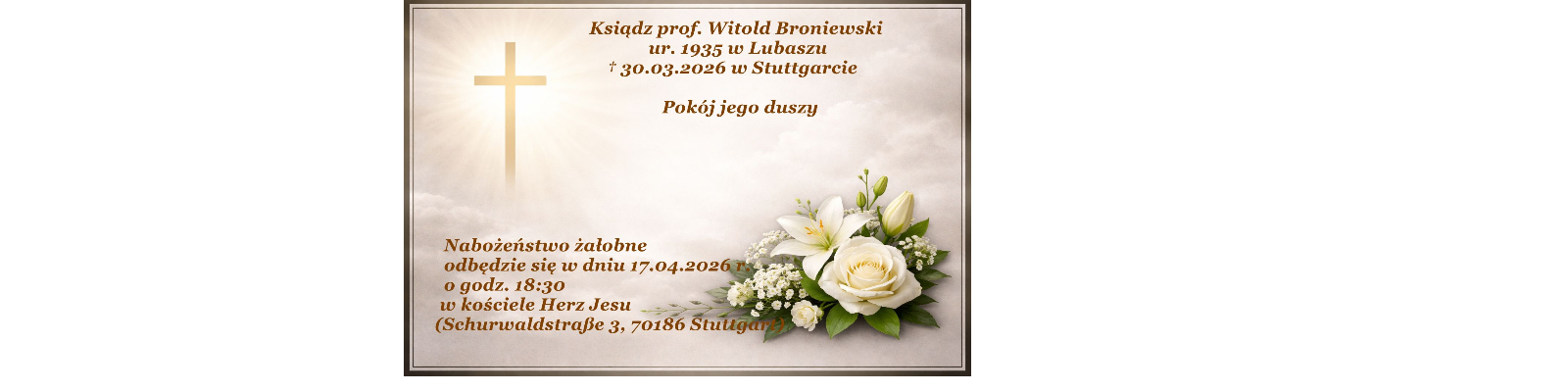 Z wdzięcznością i głęboką sympatią żegnamy cenionego duszpasterza, który towarzyszył wielu ludziom na ich drodze życia.